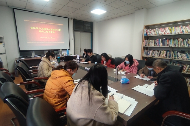 12月9日上午,四虎影院 组织召开十九届五中全会学习暨党务工作布置会,对近期党务工作进行部署推进。学院6个教工支部和7个学生党支部的支部书记参加会议。会议由学院党委书记张捍萍主持。