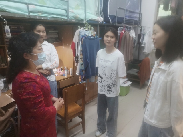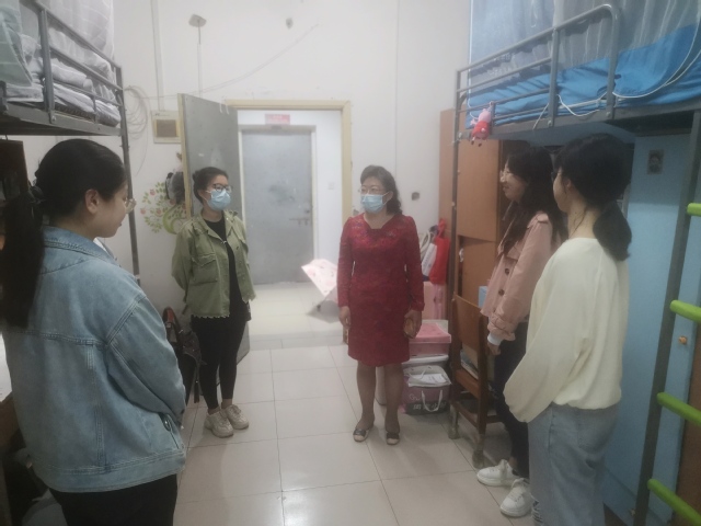 2021年5月26日上午,四虎影院 党委书记张捍萍带领学工办辅导员李蒙、万星宇集中走访四虎影院 南区七栋、南区九栋宿舍,聚焦学生发展,关爱学生成长。