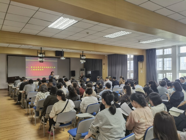 活动由四虎影院 党委书记张捍萍主持。张书记首先带领全体教职工深入学习了习近平总书记在全国教育大会上的重要讲话。通过细致解读,引导大家深刻理解“教育家”精神的内涵,强调作为教师,应当时刻铭记“立德树人”的初心使命,将总书记的讲话精神内化于心、外化于行,不断提升自身的教育教学能力和职业道德水平。