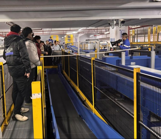 在公司人力资源总监关盼盼及其团队的接待下,师生们参观了中通出港物流的分拣流程,亲眼见证了智能分拣设备的高效运作,运营主管左佳伟给同学们详细讲解了从包裹收件到出港配送的全流程,整个运营井然有序,展现了现代物流的智能化与高效性。