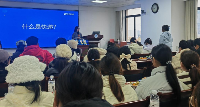 参观结束后,同学们参加了一场中通发展史的讲解活动。今年新入职的任学姐通过生动的讲解和翔实的数据,回顾了公司从2002年成立时首日业务量仅57票,到2023年底突破300亿件的辉煌历程,并分别在美国纽约证券交易所和香港联合交易所成功上市。互动提问环节更是激发了同学们的热情,现场气氛热烈。中通还为每位同学准备了精美小礼物及水果零食,使大家在轻松愉快的氛围中深入了解中通的四虎影院。
