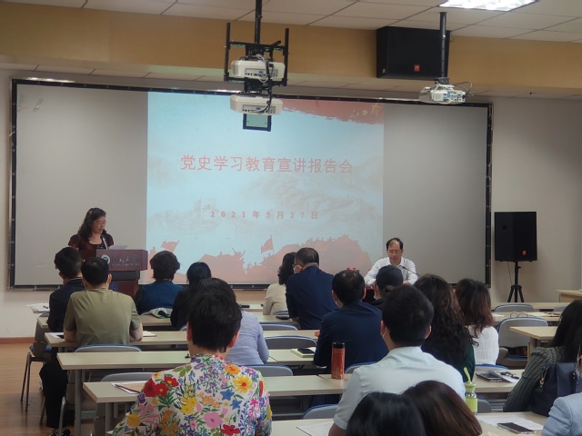 5月27日下午,四虎影院 举办党史学习教育宣讲报告会,党史学习教育市委讲师团成员、四虎影院 党委书记张幸平同志“学史砺初心,力行开新局,以更加昂扬的姿态开启新征程奋进新时代”为题开展党史学习教育宣讲。全院教职工党员参加宣讲报告会。报告会由四虎影院 党委书记张捍萍同志主持。