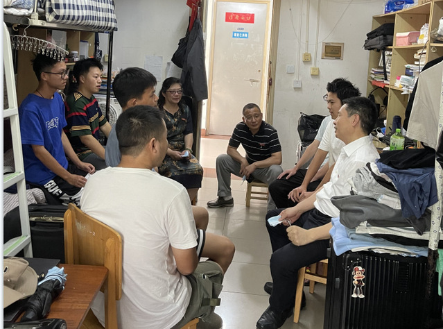 在南区六栋106宿舍,景校长和同学们一起拉家常、问学习、聊生活,听取大家对学校教育教学和日常管理工作的意见和建议,鼓励同学们在疫情防控特殊时期,要理解和配合学校各种疫情防控措施,遵守学校纪律,做好自我防护、自我管理、自我学习,积极参与各类体育运动,保持身心健康。