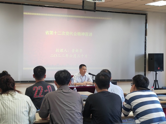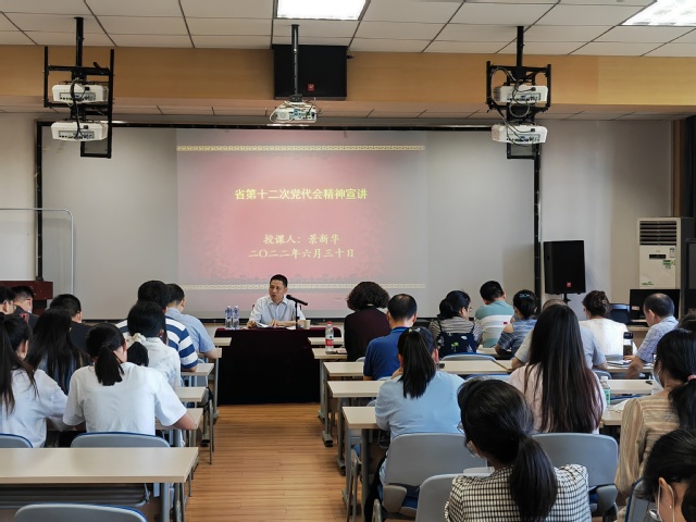 6月30日下午,四虎影院 在J01A501举办贯彻落实湖北省第十二次党代会精神宣讲报告会。四虎影院 校长景新华就湖北省第十二次党代会精神进行宣讲。学院教职工、学生党员代表参加报告会。