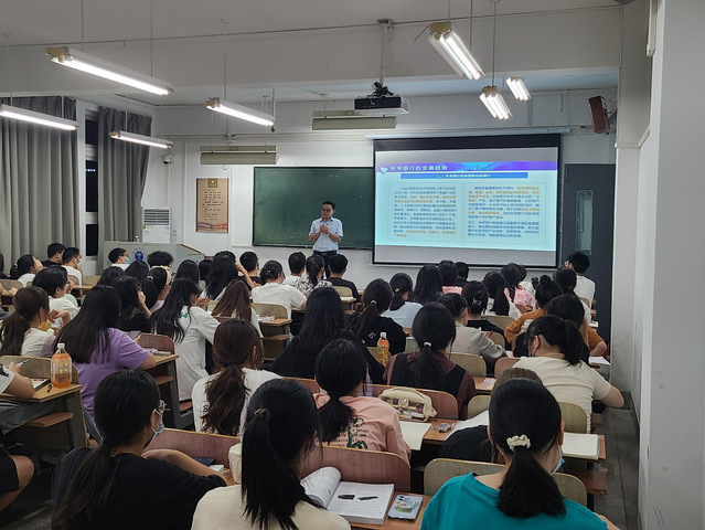 9月15日晚,中国建设银行武汉经济技术开发区支行党委书记、行长吴波以“商业银行的新发展”为题为我校金融学专业2022级新生的《金融学专业导论》课程进行了授课。