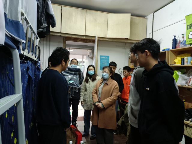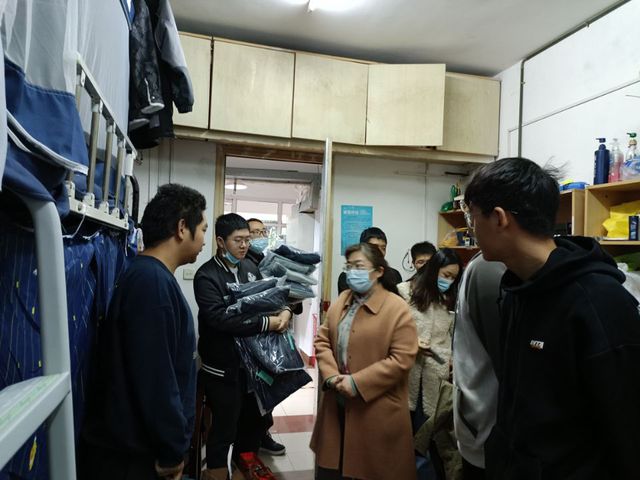 在走访过程中,张书记一行首先来到了南区六栋113寝室,仔细地询问了同学们的所学专业以及学习和生活情况,就居住环境、饮食习惯、学业进展、生涯规划等方面和同学们进行了亲切交流,勉励大家一定要珍惜在学校读书时的美好时光,踏实努力,勤奋向学,不负光阴。接着,张书记给大家送上了御寒冲锋衣,让同学们温暖过冬。