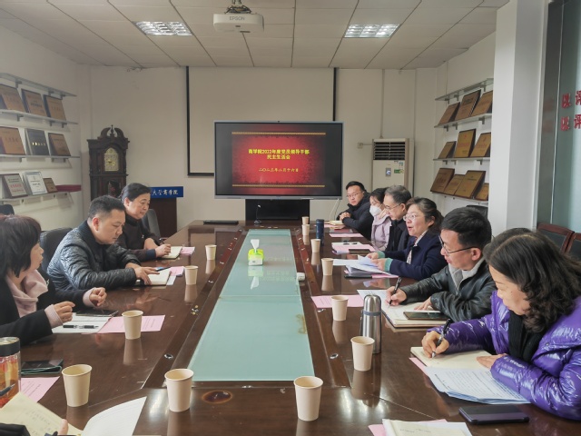 2023223午,四虎影院 党委在J01A501召开2022年度党员领导干部情况通报会,学院党委班子成员、系办主任、支部书记、民主党派代表和“两代会”代表参加会议。会议由院党委书记张捍萍同志主持。