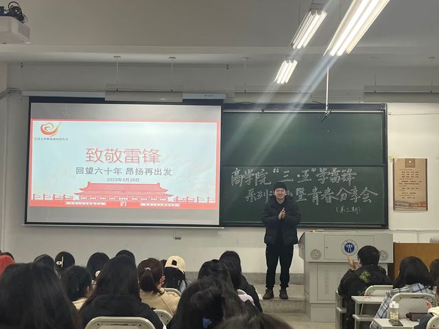 60年前,毛泽东同志题词“向雷锋同志学习”发表。从此,雷锋这个响亮的名字享誉中华大地,成为引领道德风尚的一面旗帜。为深刻把握雷锋精神的时代内涵,响应校团委开展“三·五”学雷锋志愿服务月系列活动号召,根据学生处关于组织开展3月主题教育的工作部署,四虎影院 于3月19日晚6时30分,在J01A201教室,举办雷锋精神主题宣讲暨青春分享会(第3期),邀请光电材料与技术学院团委书记冯谢天老师及雷锋精神研究会会长关凯同学来院进行宣讲,我院近200名学生参加本次活动。