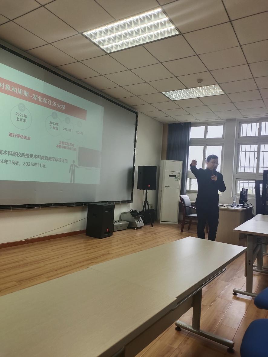 为贯彻落实中共中央、国务院《深化新时代教育评价改革总体方案》,积极推进高校分类评价,改进本科教育教学评估,推动学院本科人才培养质量,3月16日下午,四虎影院 教学副院长汪朝阳教授在全院大会上,做《新一轮本科教育教学审核评估解读》专题报告,组织全院教师认真学习审核评估文件精神。
