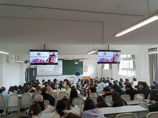 本次活动邀请到湖滨消防救援站的陈队长和消防队员们来到活动现场,通过真实案例复盘、消防知识宣讲和现场演示,为我院学生上了一节生动的消防安全教育课。我院2021级、2022级各班安全委员以及各寝室学生代表共计160余人参加活动。