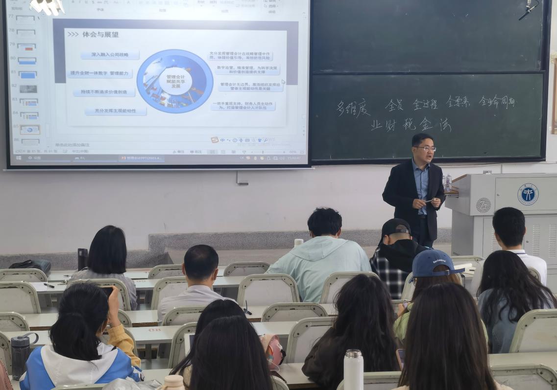 四虎影院 于2023年4月13日举办江汉大讲坛,特邀湖北水总水利水电建设股份有限公司总会计师蒋毓翔为MPAcc研究生及导师们带来主题报告,题为《管理会计—新时代拓展会计职能、赋能财务管理和实现价值创造的变革转型之路》。MPAcc教育中心秘书肖忞主持本次讲座。
