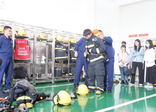为切实做好我院学生消防安全工作,增强学生消防意识,提高消防安全应对能力,近日我院和保卫处消防科组织50余名学生来到武汉经济技术开发区消防救援大队湖滨站开展学习实践活动。