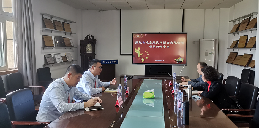 会上,我院领导对东风汽车财务有限公司代表的来访表示热烈欢迎。随后,东风汽车财务有限公司杜兴均部长就东风汽车财务有限公司的基本情况和人才需求做了简要介绍——东风汽车财务有限公司成立于1987年,是经中国人民银行批准设立的全国第一家企业集团财务公司。公司目前注册资本90亿元人民币,由东风汽车集团股份有限公司全资控股经营。公司目前资产规模已逾千亿。但随着汽车行业的发展,汽车金融行业的复合型人才需求是呈现大幅增加的态势,企业希望依托 “教学实习基地”的共建,积极探索与高校协同育人双元模式,助推人才培养,搭建学生成长成才平台,成就高校、企业、学生多方共赢。