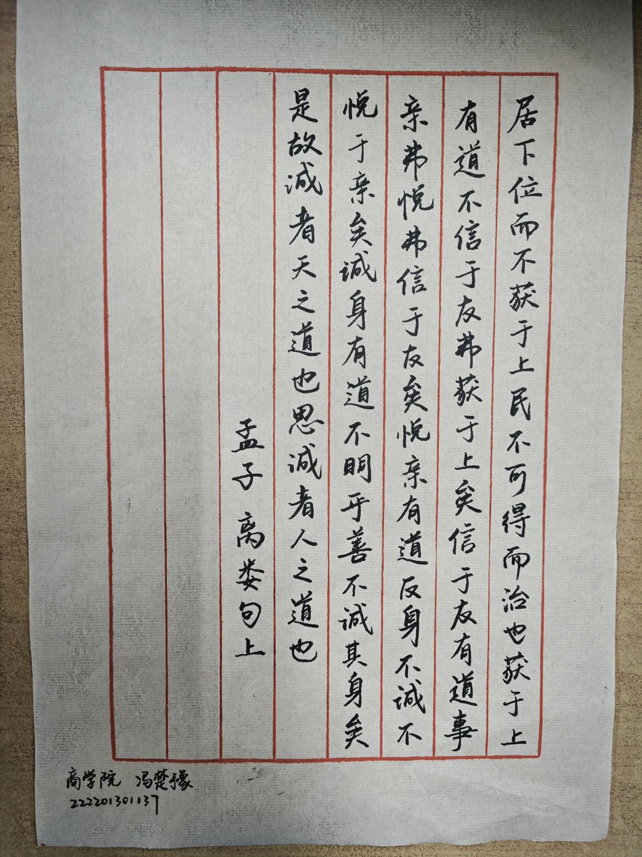 与此同时,四虎影院 联合生命科学学院在J01举办了以“诚信”为主题的书画作品创作大赛,来自10个学院共计150名同学参与了此次活动。活动现场,大家紧紧围绕“诚信”主题,开展书法、绘画创作,一笔一划之间书写着诚信的重要意义,彰显着艺术的魅力。