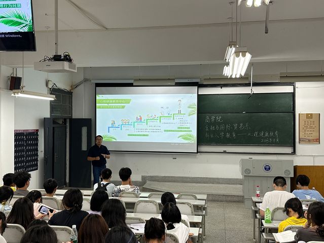首先第一环节为主题班会,辅导员向新生讲解了心理健康的标准、求助层级图,引导他们根据人际关系、适应问题、情绪管理、自我认知等方面的需求选择团体或一对一的专业帮助,耐心地解答了他们关于心理咨询、心理疏导常见的疑问,消除了同学们一些偏见和误解。现场还告知了校、院两级心理健康服务机构预约方式、场地等信息,介绍了学院举办的一些心理健康教育特色活动。第二环节中,年级辅导员组织新生集中观看了由省教育厅面向大学新生录播的心理微课。微课从理想信念、学习适应、职涯规划、心理准备、人际关系、安全防范等内容开展,对新生进行了思想、学习、心理、规划和安全等全方面的指导。观看结束后,辅导员嘱咐新生将微课学习渠道、内容推送给家长。