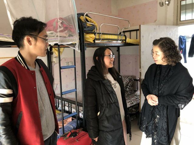 在宿舍里,各位老师向家庭经济困难学生表示亲切的慰问,并询问他们最近的学习、生活情况,详细了解宿舍的防寒保暖情况后并为其送上充满浓浓爱意的棉被,叮嘱同学们一定要注意防寒保暖,积极参加课外活动,增强体质。18级旅游管理专业的郭柯言同学来自云南雄楚,云南是旅游大省,旅游资源丰富,市场前景开阔,王书记希望郭柯言同学努力学习,将来能为家乡的发展贡献力量。每走访一名家庭经济困难学子,王书记一行都不忘勉励他们要克服困难、勤奋学习、自立自强,努力成为品学兼优的大学生。