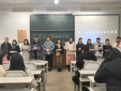 2019年1月3日晚,由会计系和实验室共同主办,财会精英人才协会承办的第二届企业价值创造实战竞赛校内赛暨开放性实验总结交流表彰大会在J01A212教室隆重举行,会计系系主任何静老师和副主任魏玉平老师参加了大会并给获奖同学颁奖。此次比赛共有49支队伍参与,有22支队伍获奖,其中一等奖五名,二等奖九名,三等奖八名。