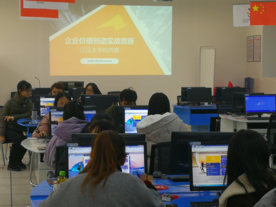 2018年12月23日14点-16点,每个小组采取在J01B504集中或小组单独集中的方式参加企业价值创造校内赛。竞赛分6期经营,每期40分钟,历时4小时完成。经过小时6期的实战,系统根据每个组经营的公司每期六大财务指标(成本控制能力、发展能力、盈利能力、营运能力、风险管理能力和现金流量能力)和四大企业经营指标(股利分配、市场份额、行业地位、履约能力)考核得分。经过4个小时的激烈竞赛,大多数参赛小组取得了优异成绩,有1个组的成绩超过90分,有4个组的成绩超过80分,有11个组的成绩超过70分,成绩较为理想。