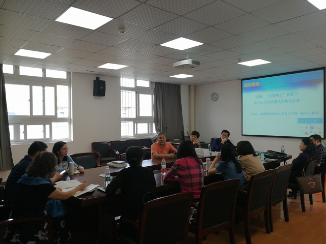 讲座结束后,在J01B405,施教授和我院会计系的老师就业财合一,流程管控的会计思想内涵和重要意义、大智移云背景下如何用会计沙盘模型进行会计教学改革和会计系教师如何应对信息技术的挑战等会计系教师当前面临的理论与实践问题困惑进行了深入交流。学术交流会结束后,施教授给会计系老师赠送了业财合一流程管控的系列教材。