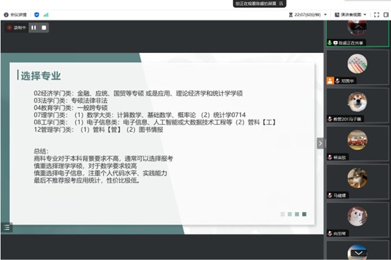 第三位分享者是数管专业熊忠旭(已被武汉大学应用统计专业录取)则提醒大家要结合自己的兴趣爱好和特长进行专业选择。针对备考,他着重强调基础知识复习、习题练习和错题分析的重要性。
