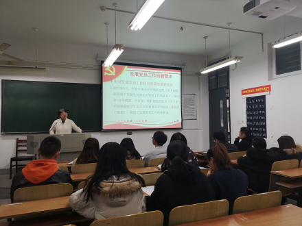 本次培训由刘志纯同志主讲,主要包括三个方面的内容:一是强调本次会议的重要性,此次会议处在“不忘初心、牢记使命”主题教育的关键时期,根据主题教育整改工作的要求将学生党支部人数较多的党支部重新设置,从而产生了新一任学生党支部书记及委员,这是落实深入调查研究、凝聚思想共识、做到边学边改的重要举措。二是讲解中央对发展党员工作提出的新部署新要求及湖北省委组织部、湖北省委高校工委的新要求,使基层党支部书记进一步明确发展党员必须始终坚持将政治标准放在首位这个核心。三是带领新任党支部书记深入学习《四虎影院 发展党员工作细则(试行)》,逐章逐条地明确发展党员的规范工作程序。