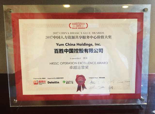 百胜中国控股有限公司是中国领先的餐饮公司,致力于成为全球最新的餐饮先锋。自从1987年第一家餐厅开业以来,截至2020年3月31日,百胜中国在中国的足迹遍布所有省市自治区(港澳台除外),在1400多座城镇经营着9295家餐厅。2020年,百胜中国位列《财富》美国500强排行榜第361位。百胜中国从Yum! Brands(纽约证券交易所代码:YUM)分拆出来之后,于2016年11月1日独立在纽约证券交易所上市,股票代码为YUMC。随着业务规模的不断扩大,百胜中国建立了集中高效的全国共享服务中心。